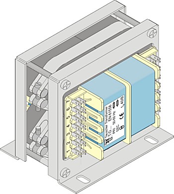 Ausführung: 1 AC Trenntransformator nach IEC / EN 61558-2-4-6 VDE 0570-2-4-6 Isolationsklasse: B (130°C) max. Umgebungstemperatur: 40°C Brandschutzklasse: UL94 V0 Schutzart: offener Transformator - IP 00, vorbereitet für Schutzklasse I komplett in Vakuum getränkt Frequenz: 400 Hz Kühlart: Selbstkühlung Befestigung: durch Fußwinkel